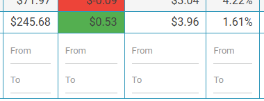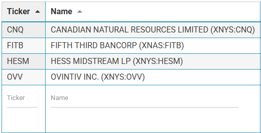 ![]() | At the bottom of each column you will find a way to search that whole column. You can search the Ticker, Name, Industry and Value by just typing it. This will search exactly what you type or if it contains some letters of the word. |