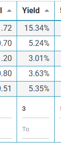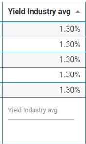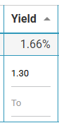 | Now we will look at the Yield Industry Average. Average Yield is 1.30%. | ![]() ![]() Adding 1.3 to the Yield will update the table to one result. |