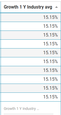 | Since we are focused on one industry let’s see averages. Another great source of information from the site is the Average columns. The Growth 1 Year Industry column tells us on average we have 15.15% growth for all Aerospace & Defense stocks on the site. | ![]() ![]() We will add 15.15 on the Growth 1 Y column. |